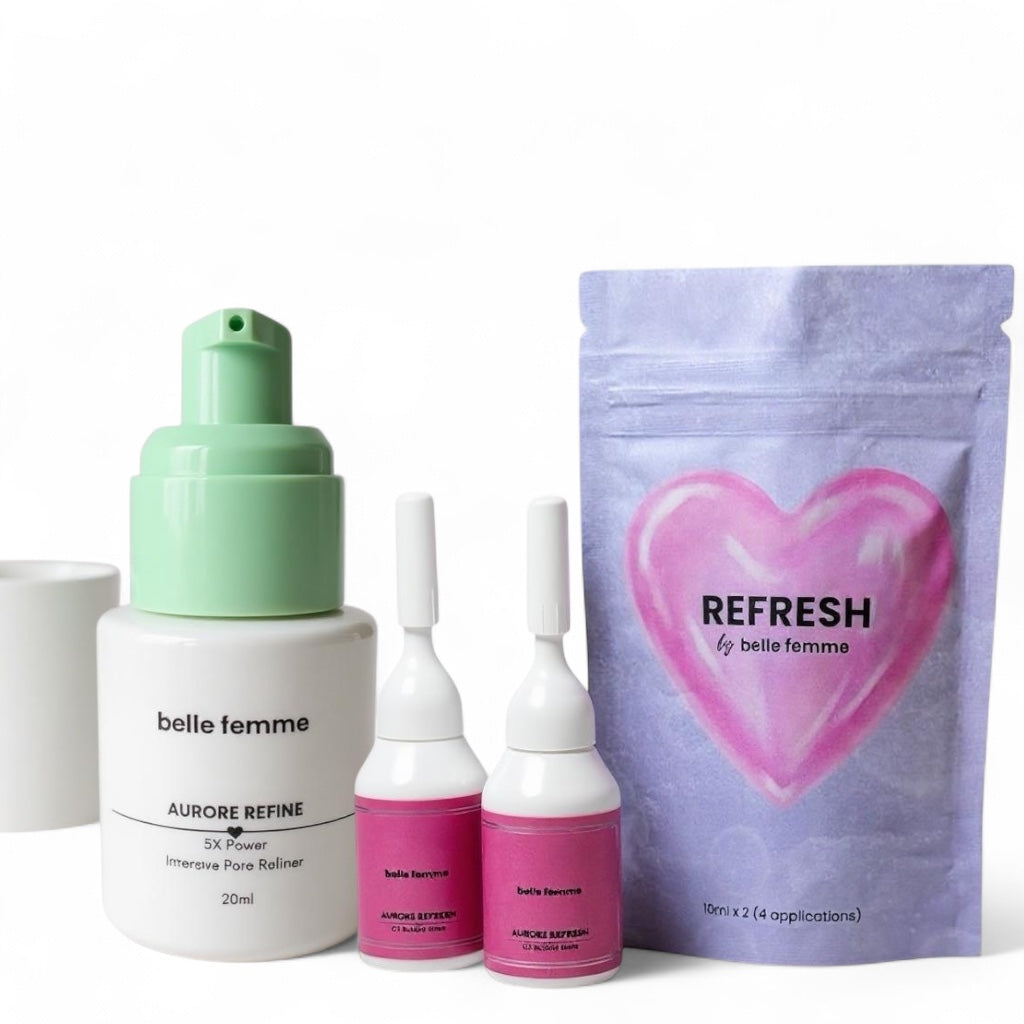 1. Once a week, apply Aurore Refresh to clean, dry skin. Let bubbles activate for 5–10 minutes, massage, then rinse.
